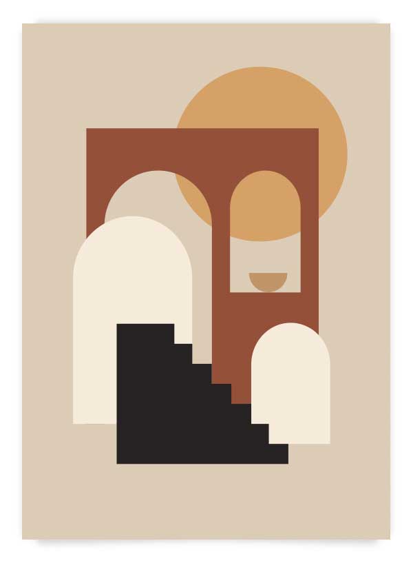 Poster abstract cu forme geometrice în nuanțe de bej. Îl poți comanda împreună cu celelalte modele asemănătoare.