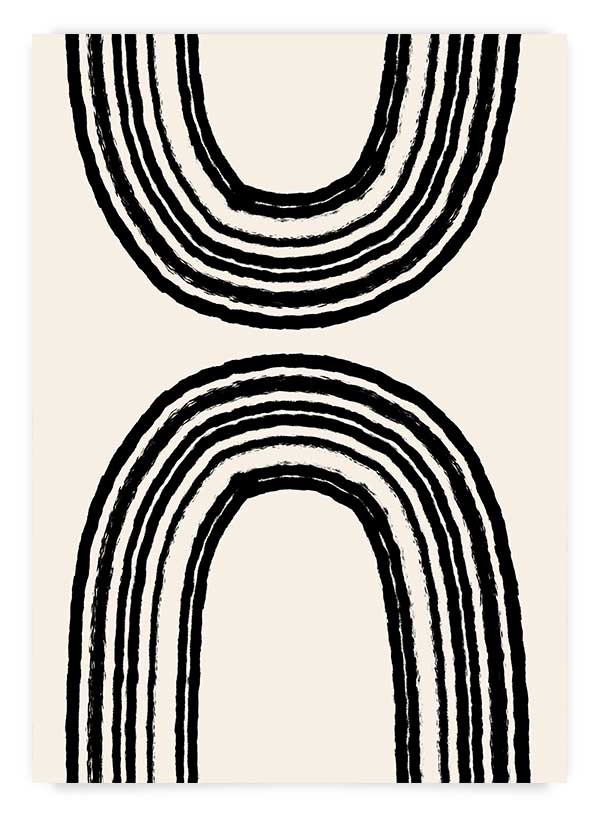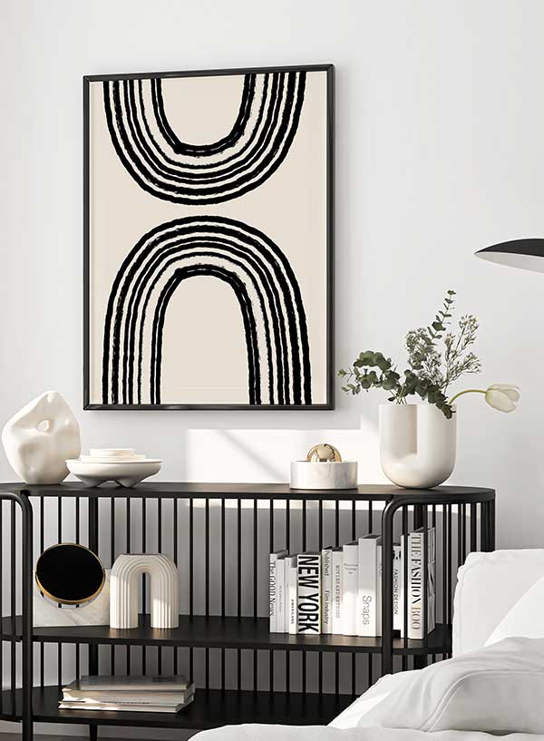 Poster perete cu ilustrație abstractă în nuanțe de negru pe fundal bej. Alege acest design ca tablou pentru un living decorat modern.