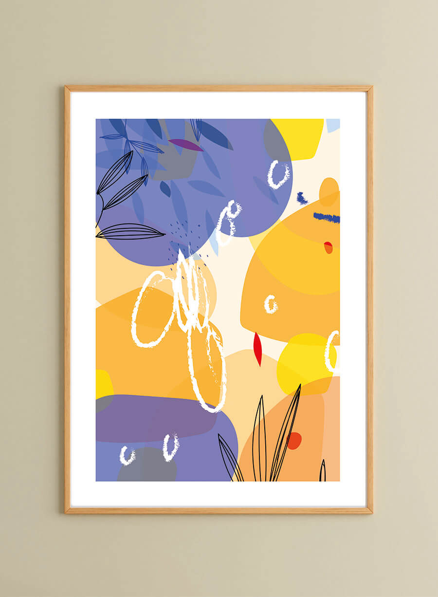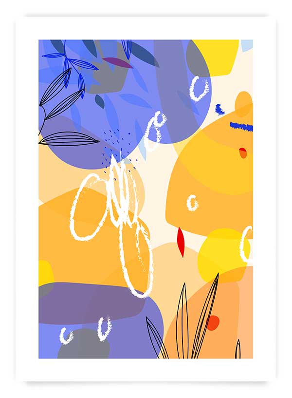 Un poster de perete abstract în culori vesele pentru un spațiu decorat modern. Poate fi comandat împreună cu celelalte modele 'Abstract chaos'. Adaugă o ramă simplă albă, neagră sau de lemn.