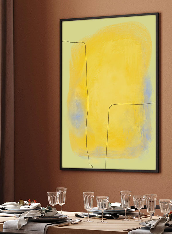 Poster abstract în nuanțe de galben și indigo. Apricity înseamnă căldura soarelui într-o zi de iarnă.
