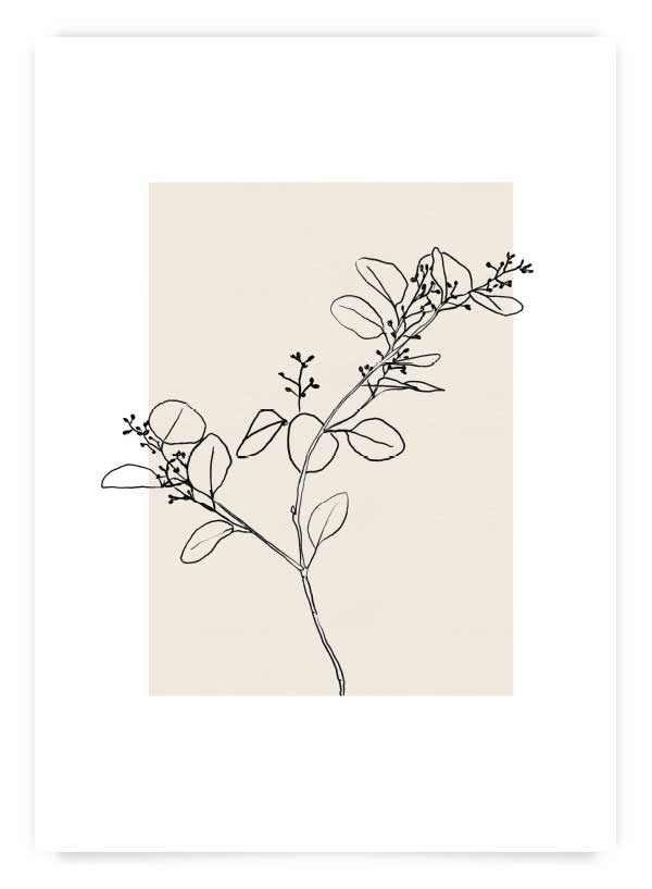Poster din colecția cu tematică botanică - crenguță cu frunze pe fundal crem. Îl poți comanda împreună cu modelul 'Archives de botanique 1' pentru un set de 2 postere.