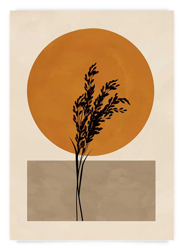 Poster cu tematică abstractă în nuanțe de bej și ilustrație botanică potrivit într-un dormitor sau living boem.
