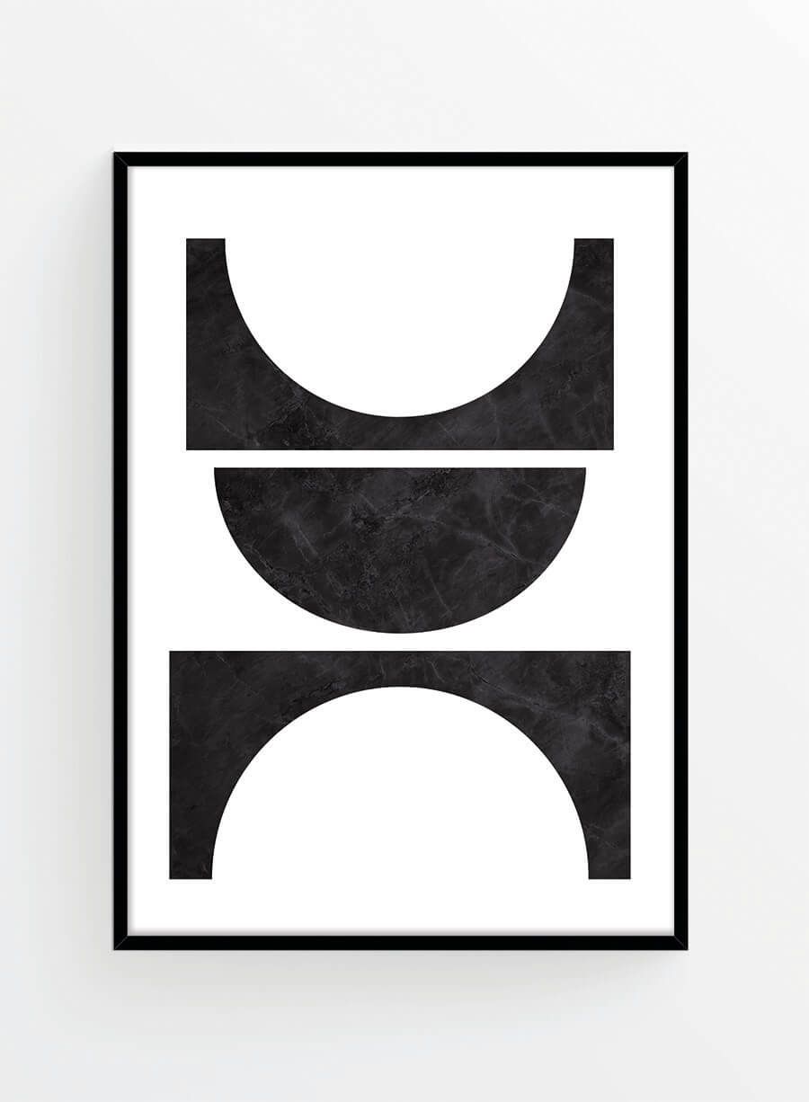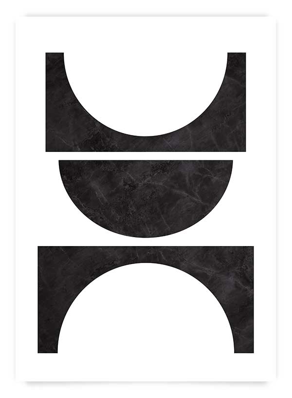 Poster abstract geometric care va adăuga o notă artistică spațiului pe care vrei să-l decorezi. Poate fi comandat împreună cu modelele 'Black Shapes 5' și 'Black Shapes 6' pentru un set de 3 postere.