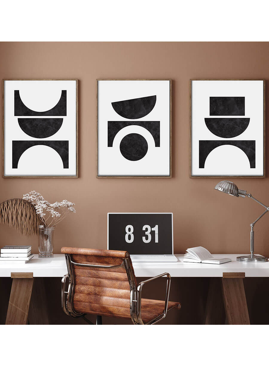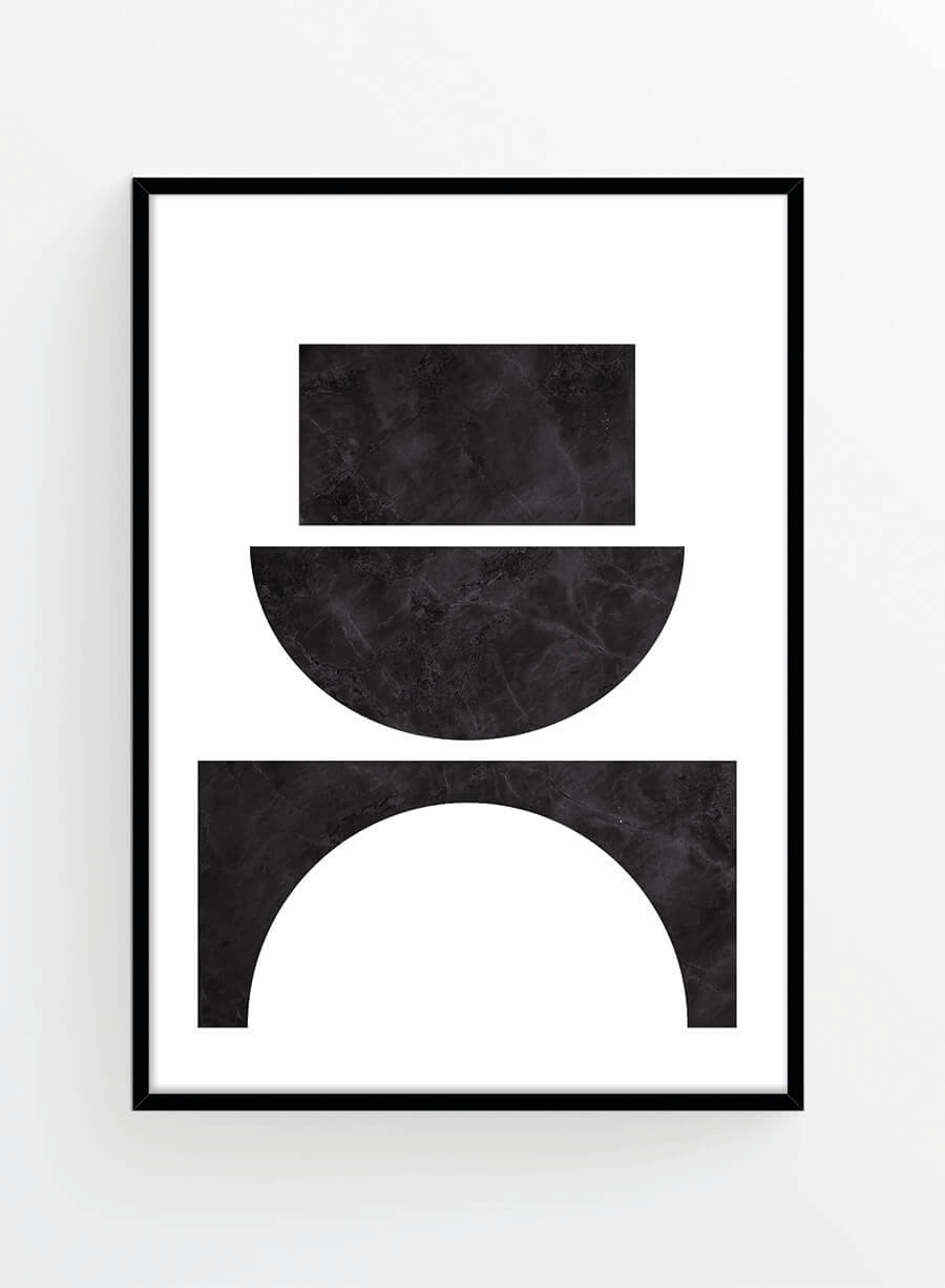 Poster abstract geometric care va adăuga o notă artistică spațiului pe care vrei să-l decorezi. Poate fi comandat împreună cu modelele 'Black Shapes 5' și 'Black Shapes 4' pentru un set de 3 postere.