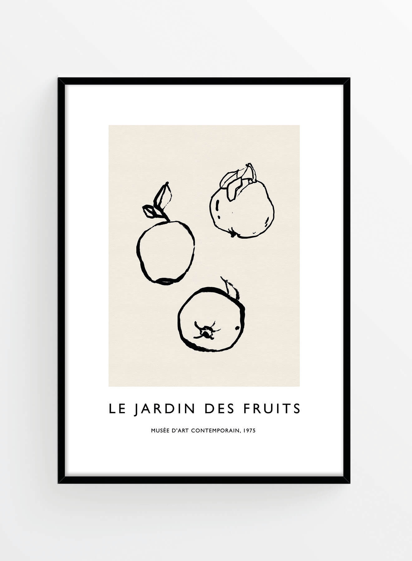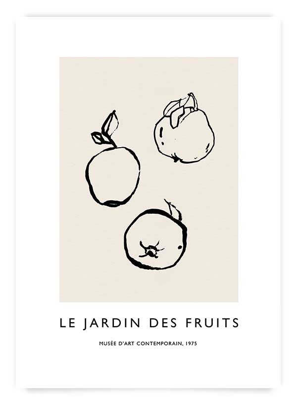 Poster din colecția cu tematică botanică - fructe cu frunze pe fundal crem și text.