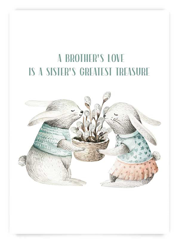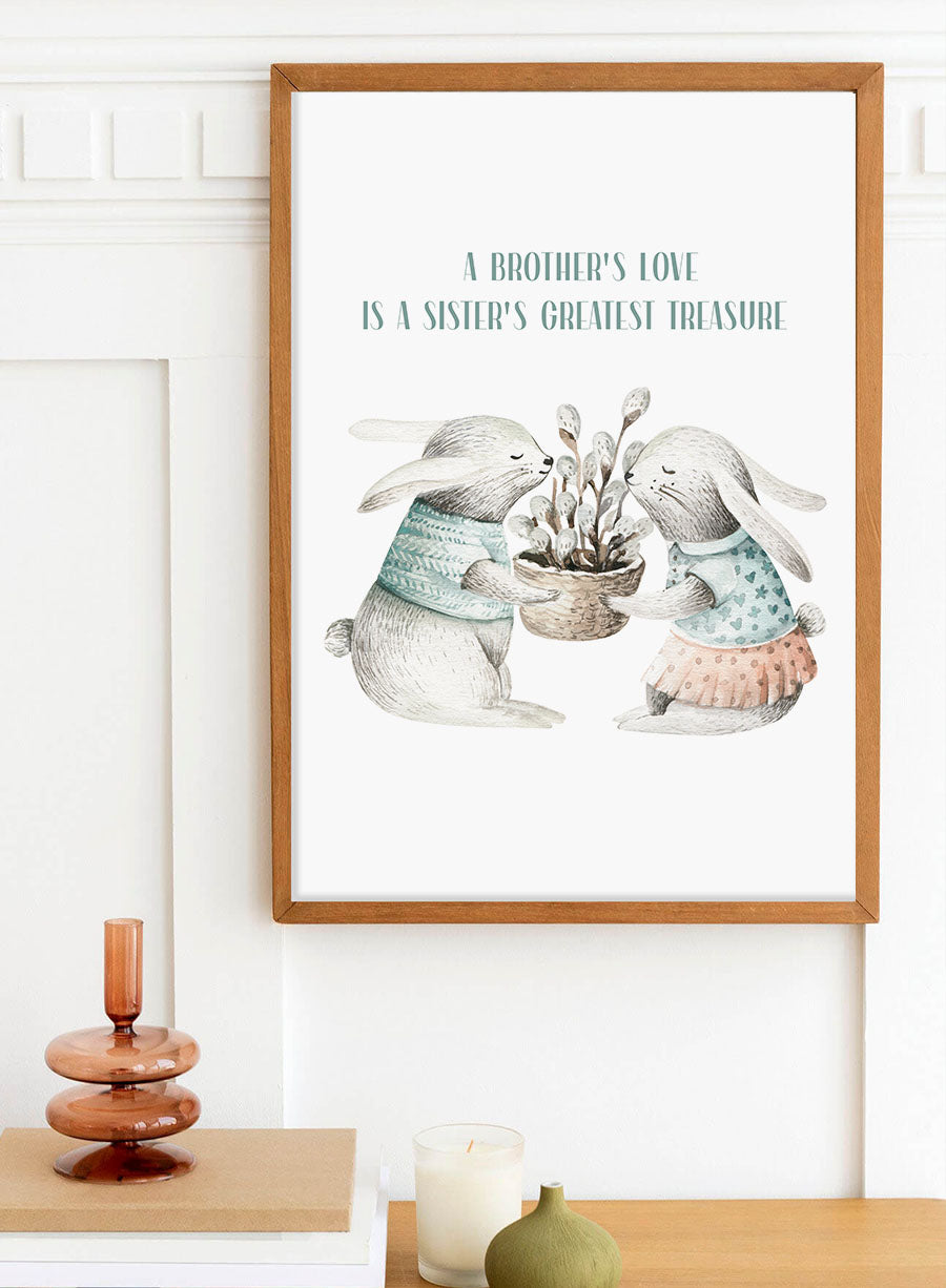 Un poster cu ilustrație și text pentru camera copiilor. 'A brother's love is a sister's greatest treasure'.