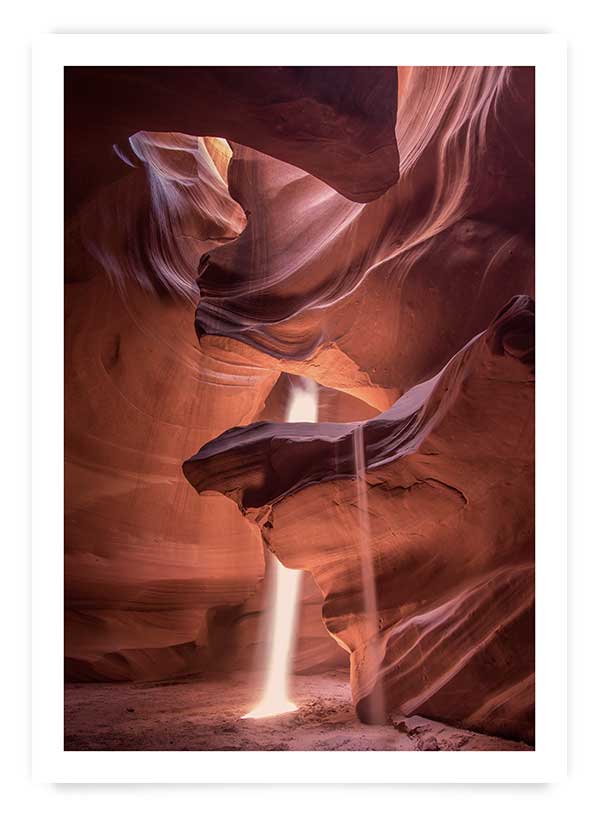 O fotografie încântătoare cu o rază de lumină care pătrunde în interiorul canionului. Posterul emană liniște, o atmosferă calmă și poate fi combinat cu alte modele în aceleași nuanțe sau cu postere motivaționale.