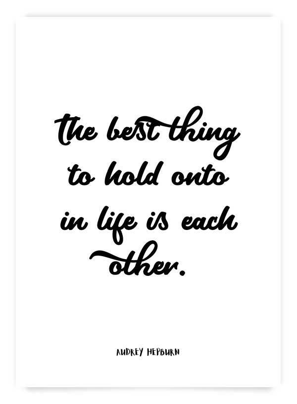 Poster cu citat din celebra actriță Audrey Hepburn. Îi poți adăuga o ramă albă, neagră sau de lemn pentru a-l transforma într-un tablou.