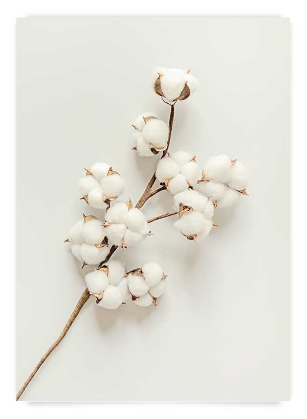 Poster fotografie cu o crenguță de bumbac pe fundal deschis.