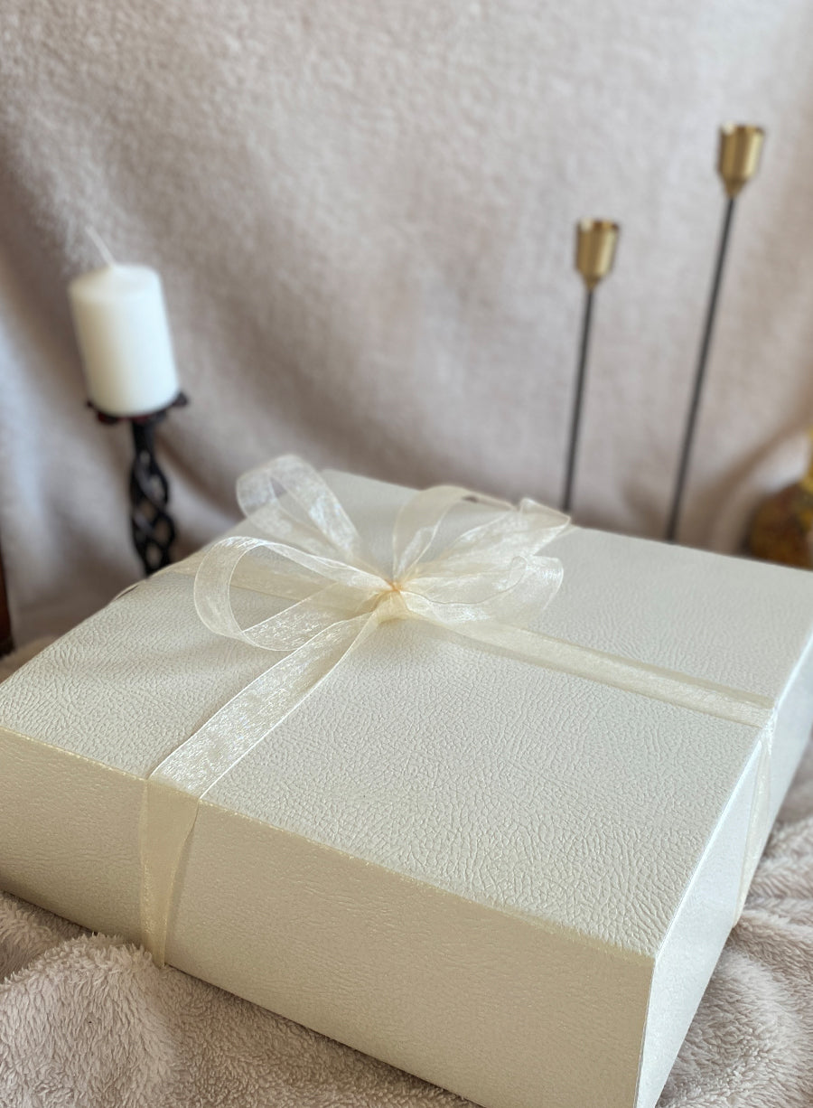 5. Cutie cadou crem cu fundiță - dimensiune totală 32x32cm.