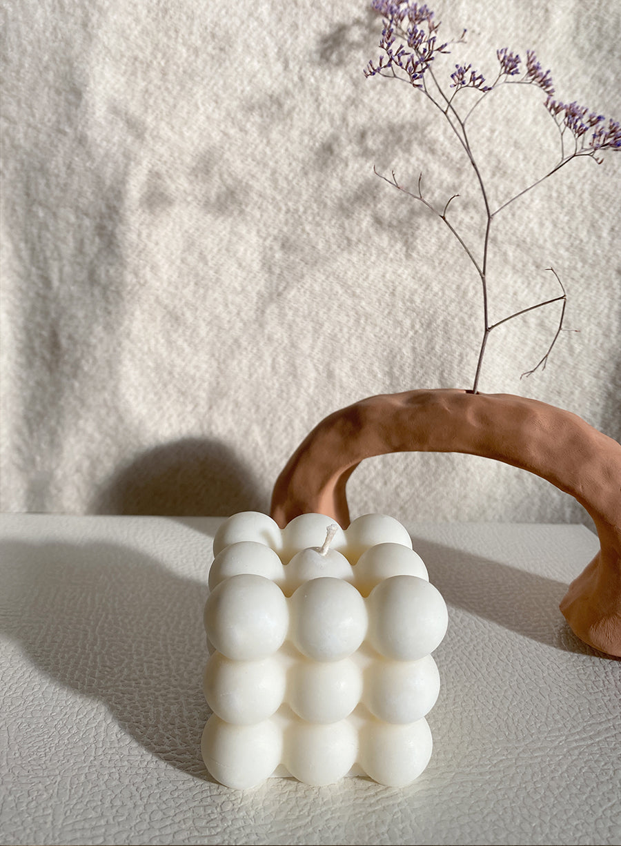3. Lumânare Bubble handmade albă cu parfum de măr și scorțișoară