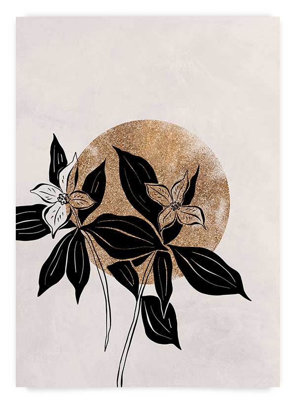 Poster minimalist cu auriu, beige și ilustrație botanică. Poate fi comandat împreună cu modelul 'Elegance 1' pentru un set de 2 postere.