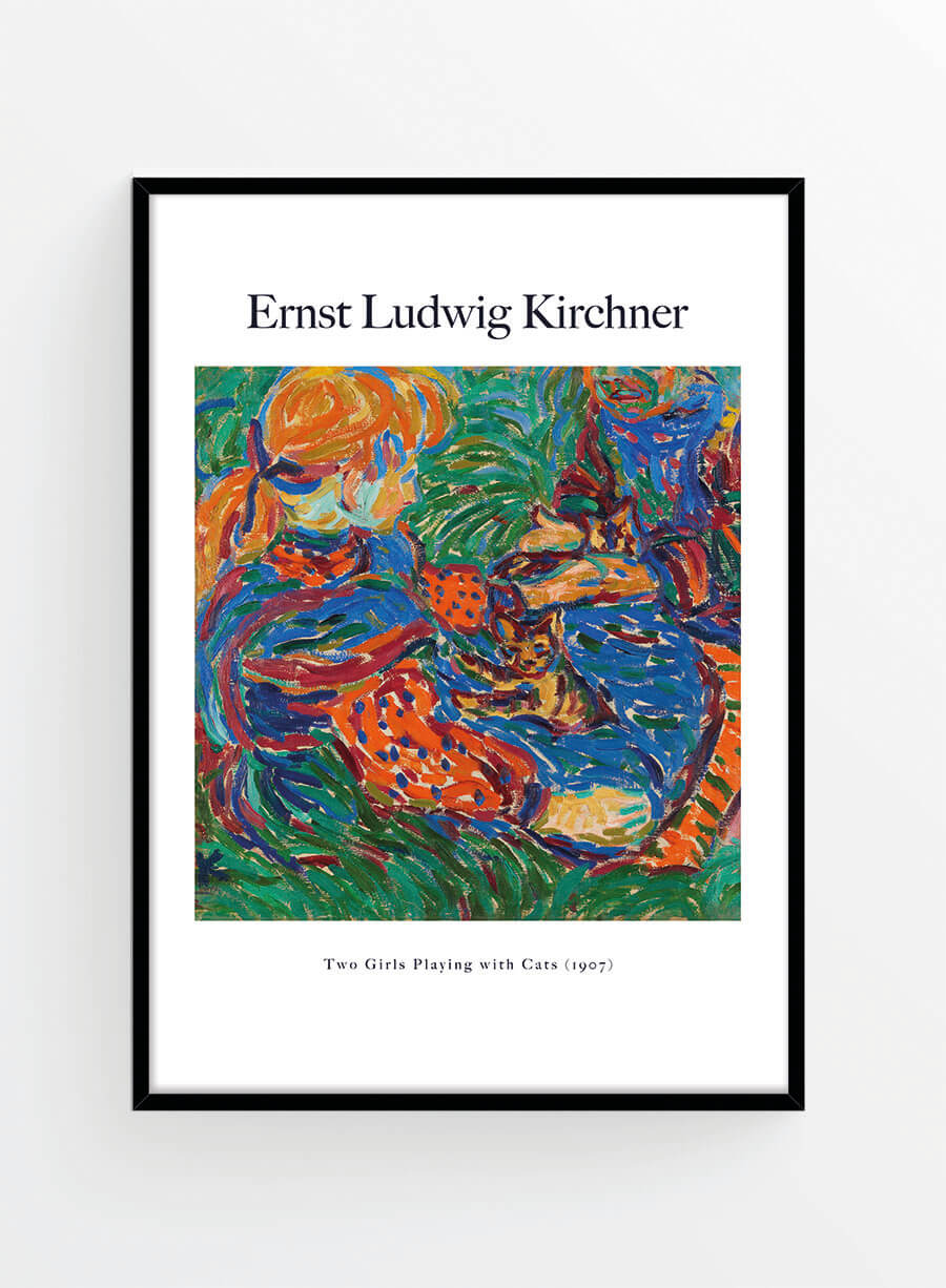 Poster model Ernst Kirchner no. 1 Two Girls Playing With Cat (1907)