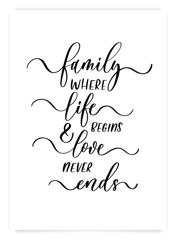 Un poster de dragoste pentru familie cu text pe fundal alb. Îi poți adăuga o ramă albă, neagră sau de lemn pentru a-l transforma într-un tablou.