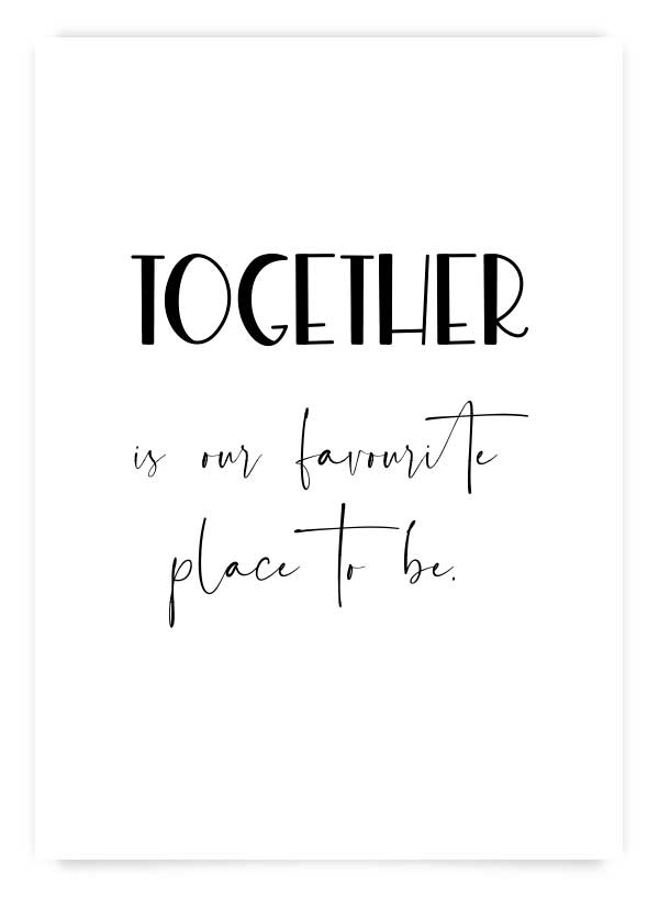 Un poster romantic cu text pe fundal alb. Îi poți adăuga o ramă albă, neagră sau de lemn pentru a-l transforma într-un tablou.