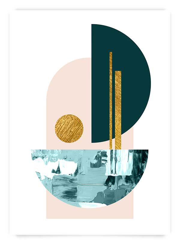 Poster cu tematică abstractă care se potrivește perfect într-un dormitor eclectic sau modern. Posterul se poate comanda împreună cu modelele 'Geometric & gold 1' și 'Geometric & gold 3' sau 'Geometric & gold 4'.