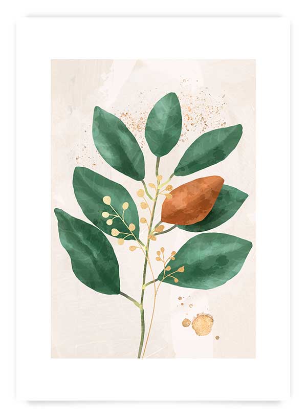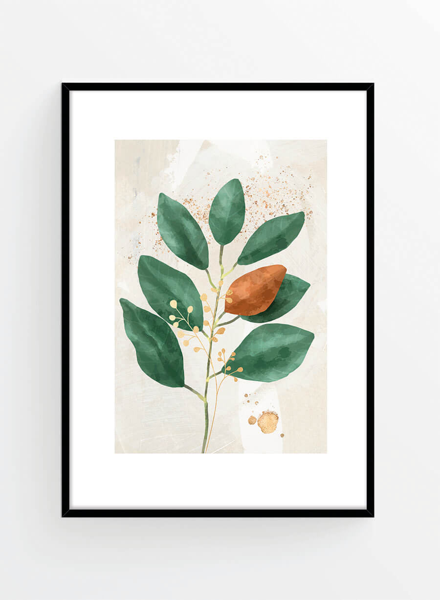 Poster cu tematică botanică care se potrivește perfect într-un dormitor romantic. Design-ul posterului include marginea albă prezentă în imaginea de produs.
