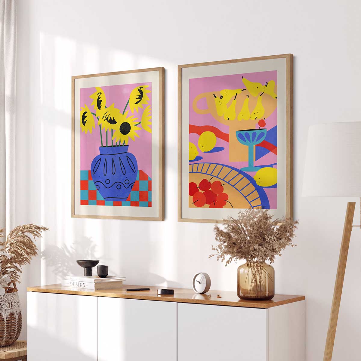 Setul conține 2 postere de aceeași dimensiune, fără rame. În fotografii, setul este prezentat în format 50x70 cm. Posterele se printează încadrate de marginea grej care imită un passepartout.
