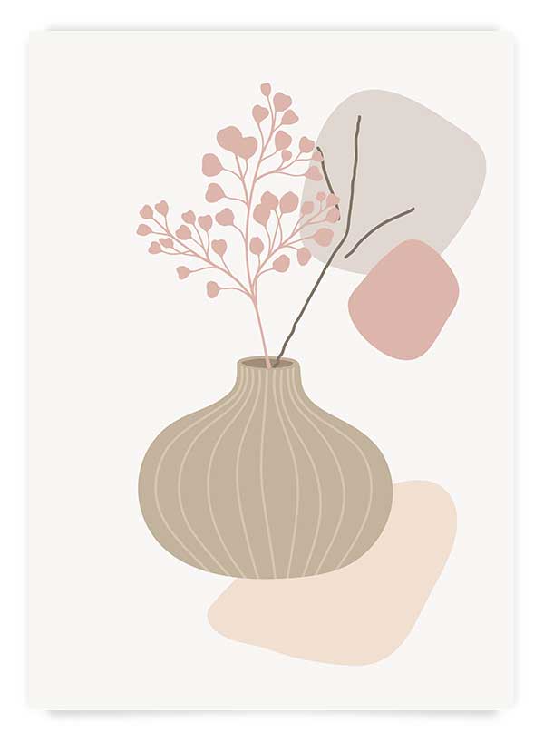 Un poster în culori neutre cu ilustrații botanice care se va integra într-un spațiu cu atmosferă boemă, cum ar fi un dormitor amenajat în stil boho.