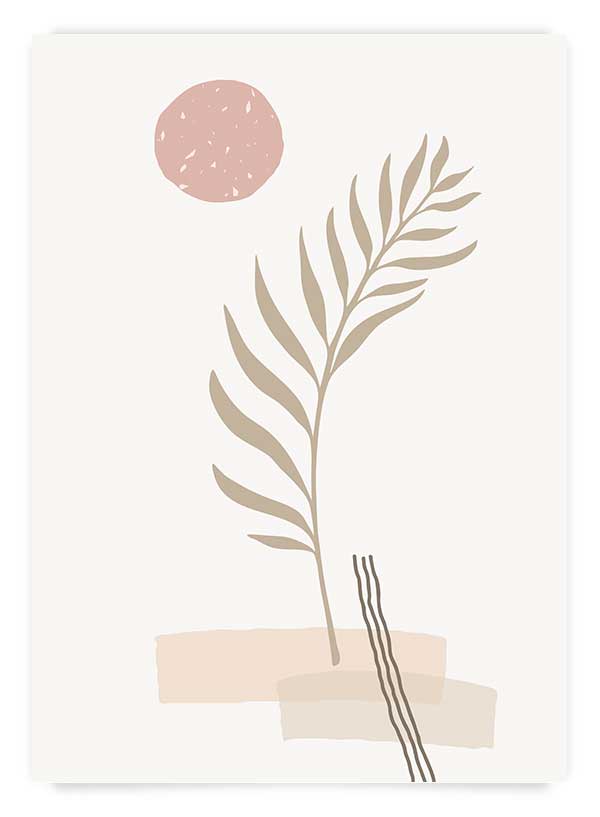 Un poster în culori neutre cu ilustrații botanice care se va integra într-un spațiu cu atmosferă boemă, cum ar fi un dormitor amenajat în stil boho.
