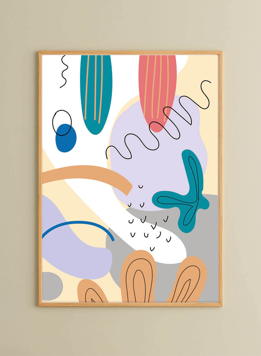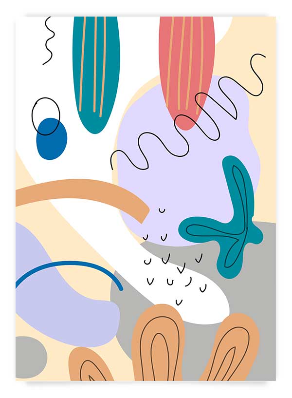 Poster abstract cu ilustrații în nuanțe vesele. Poate fi comandat împreună cu modelul 'Joy 1' pentru un set de două postere.