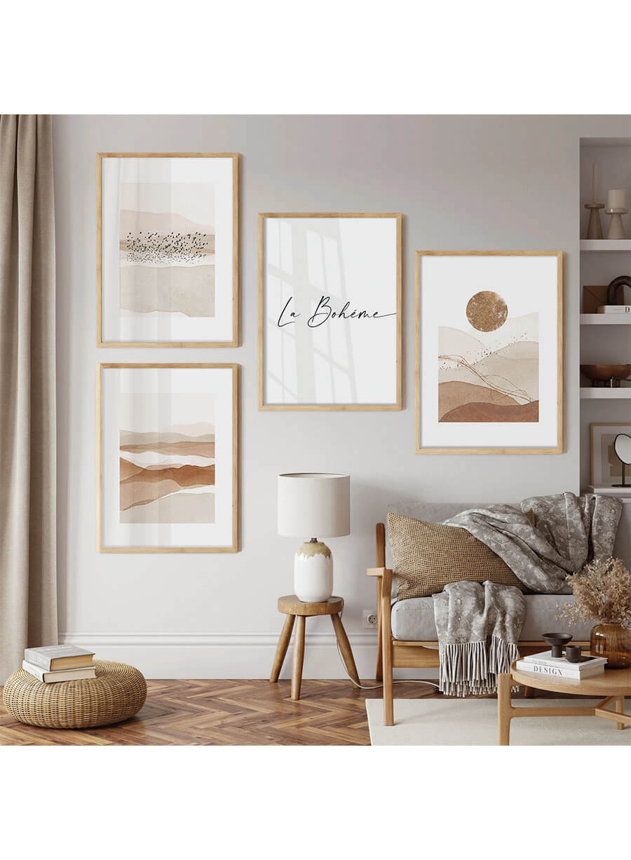 Poster cu forme abstracte watercolor și păsări pe care îl poți comanda alături de modelele 'Landscape 1' și 'Landscape 2' pentru un set de 3 tablouri. Nu uita să adaugi o ramă albă, neagră sau de lemn pentru a-l agăța pe perete.