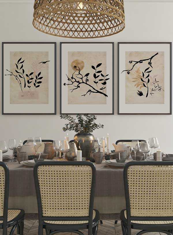 Poster din colecția cu tematică botanică - ilustrație cu frunze pe fundal beige, cu aspect vintage.Poate fi comandat împreună cu modelele 'Leaf composition 1' și 'Leaf composition 3' pentru un set de 3 postere.