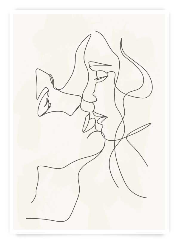 Ilustrație line-art pe fundal bej deschis. Un poster romantic pentru decorarea unui dormitor modern, scandinav cu accente în culori neutre.
