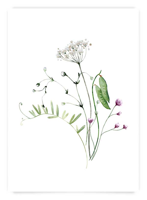 Poster cu ilustrație florală watercolor și accent auriu. Se poate comanda împreună cu 'Maxi plant' și 'Maxi flower 2' pentru a forma un set de 3 postere.