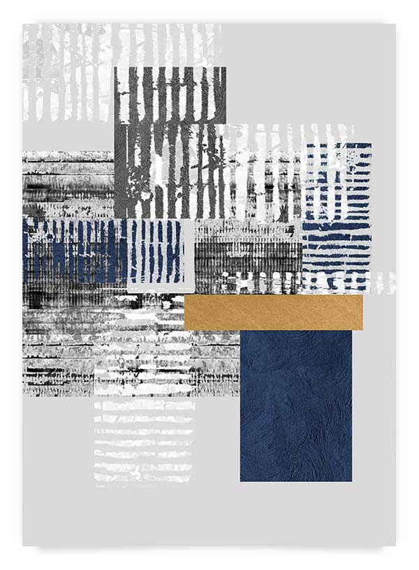 Poster elegant abstract în nuanțe de bej, bleumarin și alb. Poate fi comandat împreună cu modelele 'Modern Abstract 8' și 'Modern Abstract 9' pentru un set de 3 postere.