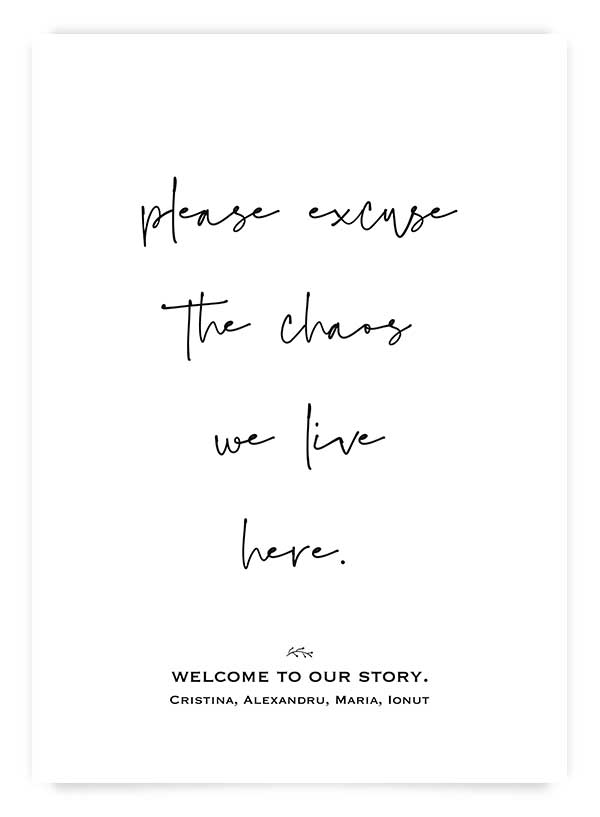 Dezordonați, cu capul în nori, dar împreună! Dăruiește posterul personalizat cu numele tuturor celor din familie.