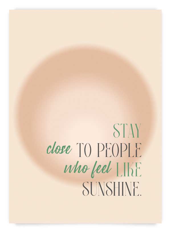 Poster tipografic cu text 'Stay close to people who feel like sunshine.'