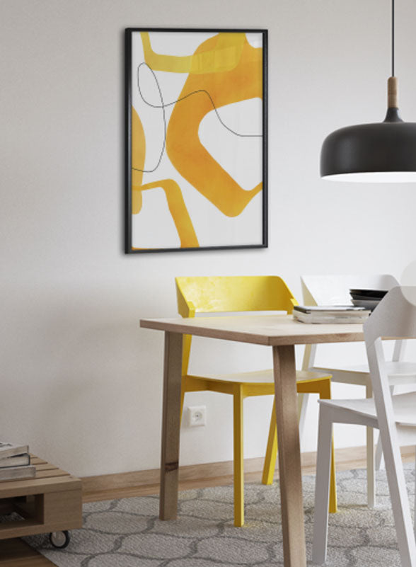 Poster abstract statement cu forme geometrice în nuanțe de galben. Posterul se poate agăța pe perete atât în format landscape cât și portrait.