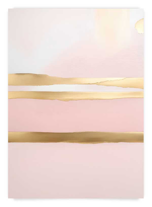Un poster abstract în nuanțe de roz și inserții aurii cu o textură subtilă.