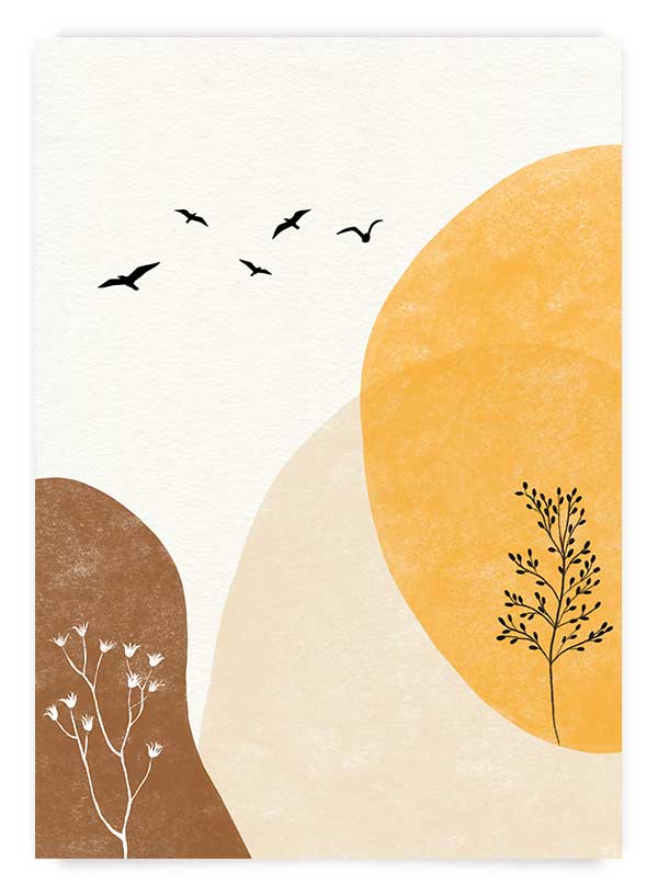 Poster de perete cu ilustrații și forme geometrice care se potrivește perfect într-un dormitor boem. Adaugă o ramă albă, neagră sau de lemn și bucură-te de tablou în fiecare zi!