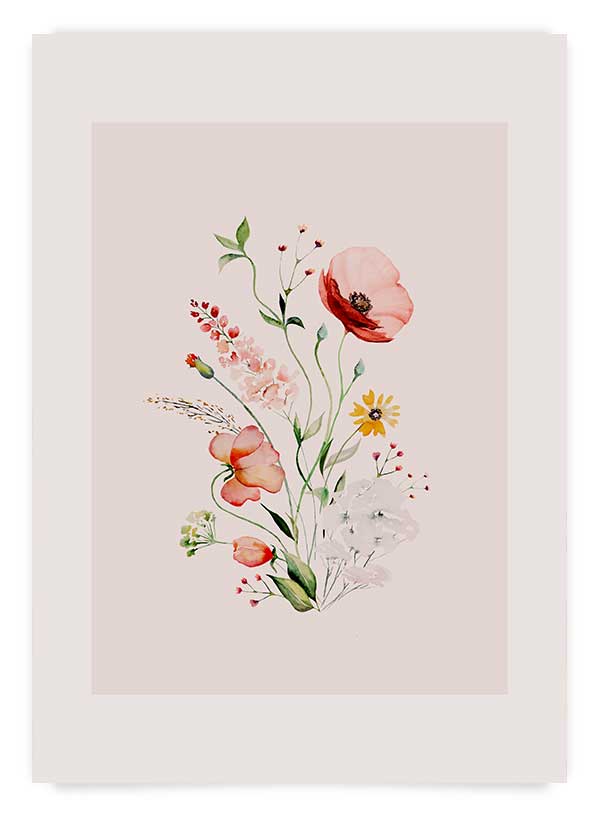Posterul se printează exact ca în imaginea de produs, încadrat de marginea beige. Poate fi comandat împreună cu modelele 'Plants & shapes 2' și 'Plants & shapes 3' pentru un set de 3 postere.
