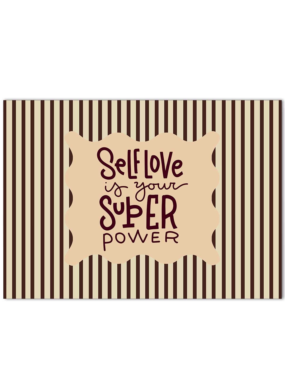 Poster motivațional cu mesaj 'Self love is your superpower' pe un fundal minimalist cu linii.