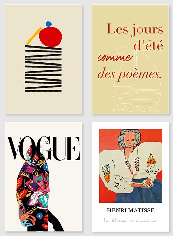 Acest produs conține 4 postere 21x30cm fără rame. Se vor potrivi cu orice fel de rame pe dimensiunea 21x30cm.