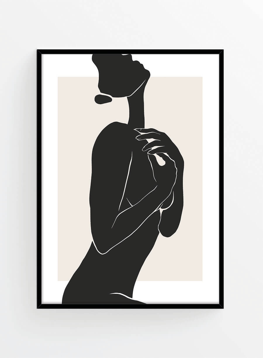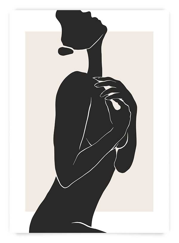 Poster cu ilustrație – un design minimalist alb-negru, ideal pentru interioare contemporane și elegante. Modelul adaugă un contrast dramatic și un punct focal de interes, fiind perfect pentru decorarea livingurilor sau dormitoarelor moderne.