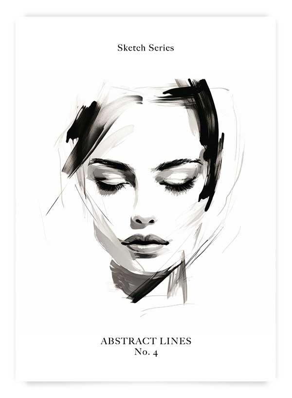 Poster modern cu ilustrație sketch și text 'Sketch series Abstract lines no.4' pe fundal alb.