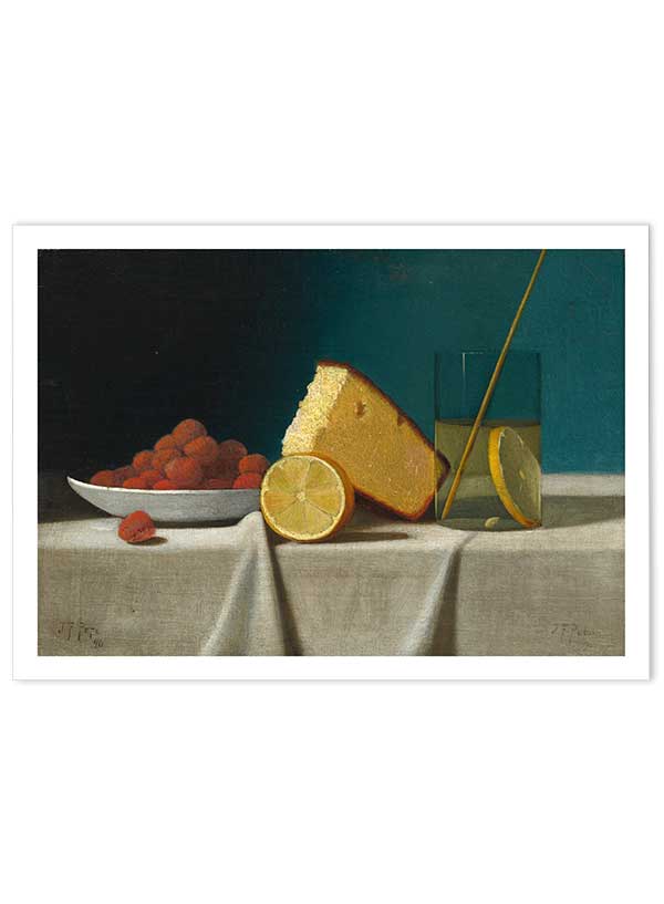 Poster model Still Life with Cake, Lemon, Strawberries, and Glass - John Frederick Peto