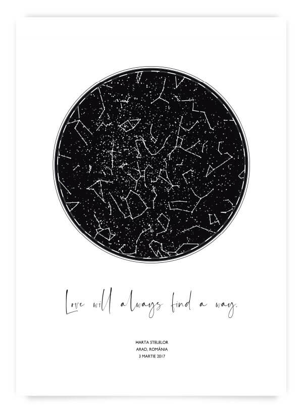 Print personalizat cu harta stelelor așa cum se vedeau pe cer într-o zi specială din viața ta.♡ Poate fi ziua când v-ați cunoscut, când v-ați căsătorit sau ziua când ați aflat că veți fi părinți. Un cadou special pentru toată viața!