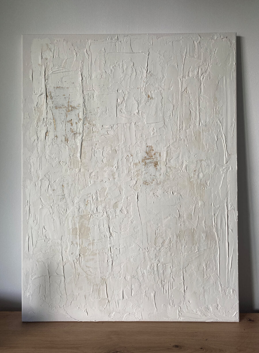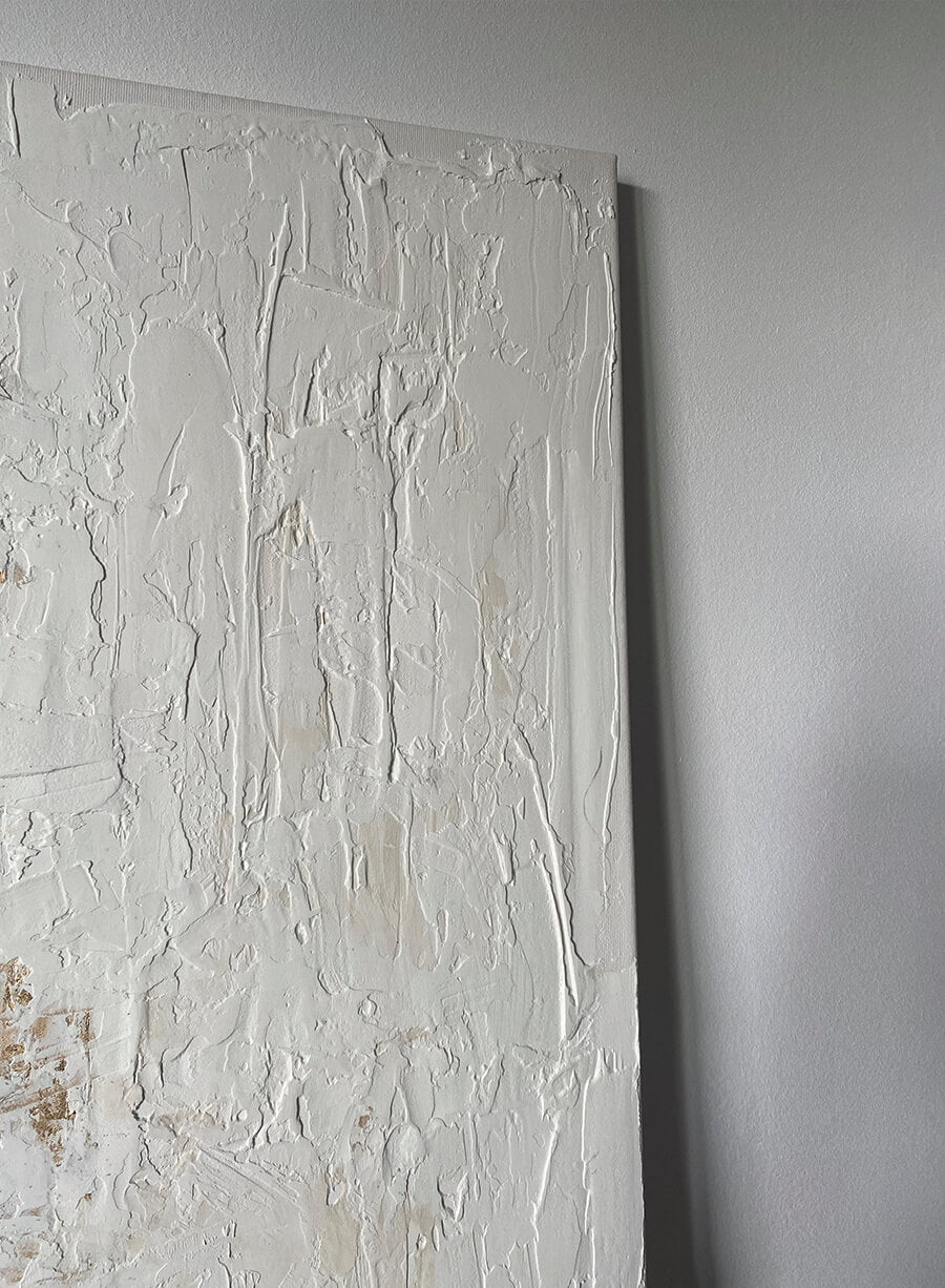 Fiecare zi e o nouă filă albă pe care să-ți scrii povestea. O poveste cu serenitate și furtuni care împreună îți desenează viața. Povestea tabloului Serene Storm 02 este aceeași - culori serene, un alb neimaculat, imperfect dar persistent, picături aurite și linii ferme adunate de vânt.