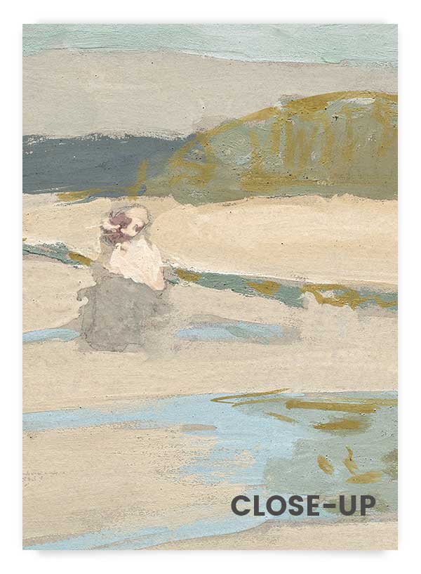Lucrarea lui Édouard Vuillard surprinde atmosfera liniștită a plajei din Saint-Jacut de la Mer, creată printr-o tehnică unică de tempera - amestecarea pigmentului cu clei pentru a obține tonuri mate și uniforme. Ideal pentru a adăuga un aer contemplativ și rafinat oricărui interior, acest poster evocă farmecul subtil al coastelor franceze și aduce în prim-plan o estetică vintage deosebită.