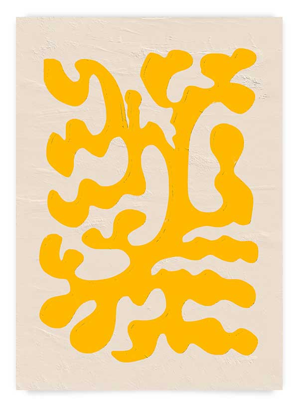 O creație abstractă în nuanțe de galben și bej pentru un spațiu luminos, decorat cu elemente moderne.