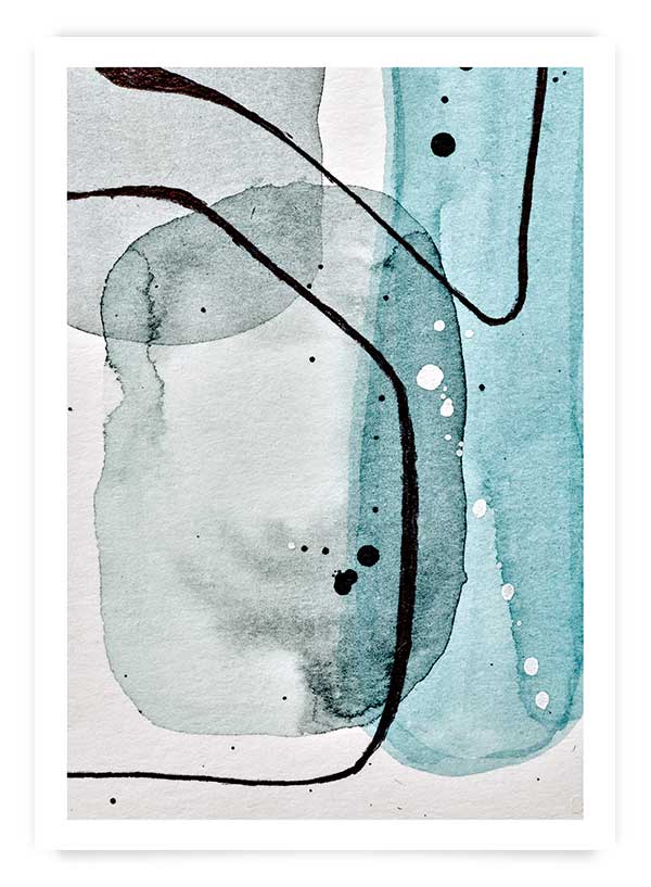 Texturi abstracte în nuanțe de albastru, negru și auriu. Posterul se poate comanda împreună cu modelele 'Watercolor Blues 2' și 'Watercolor Blues 1'. Îți recomandăm să alegi rame albe, negre, aurii sau de lemn care vor scoate în evidență culorile posterelor.