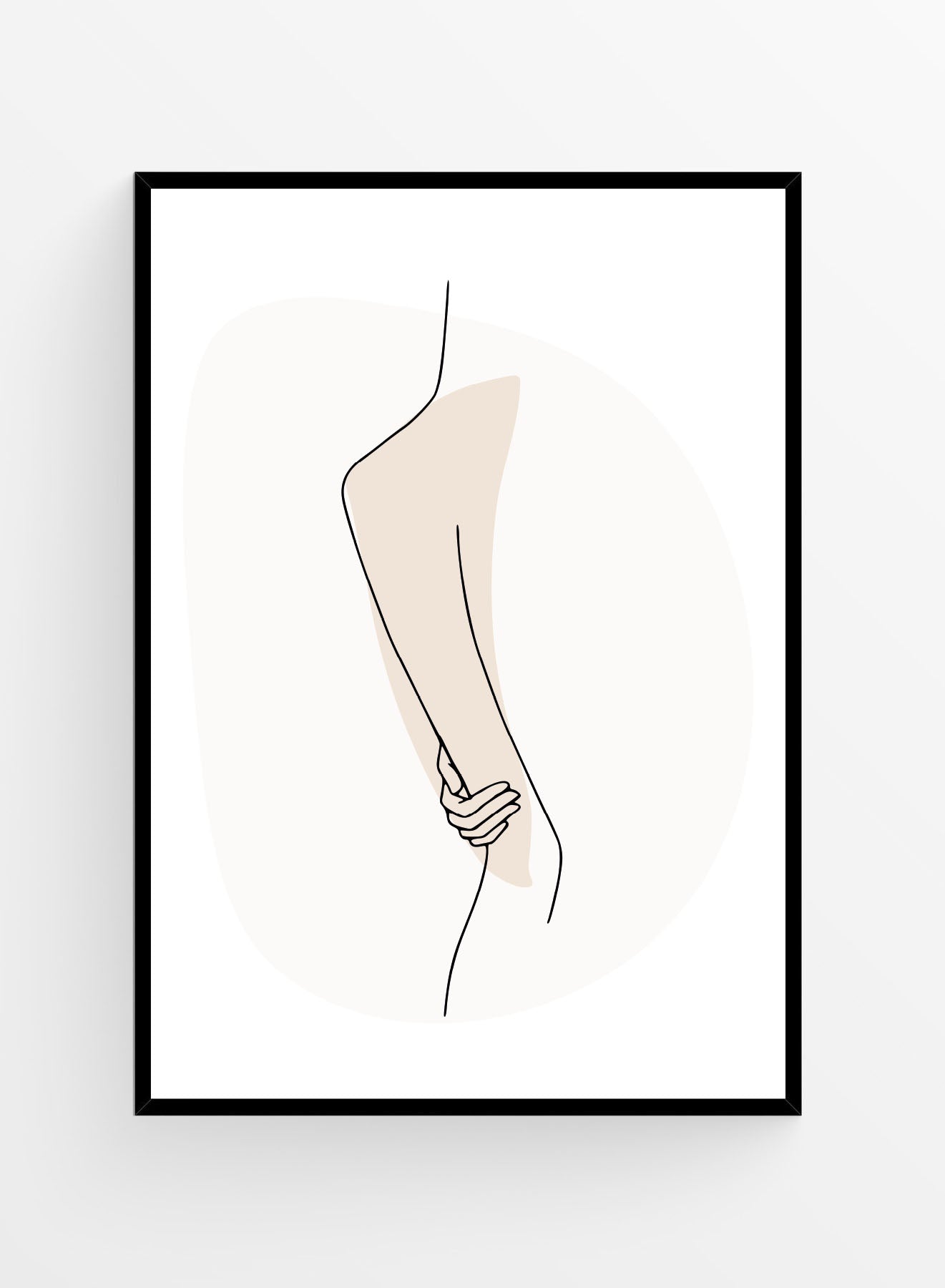 Poster line-art cu ilustrație romantică și forme geometrice în culori neutre. Îl poți comanda pentru amenajarea unei băi cochete.