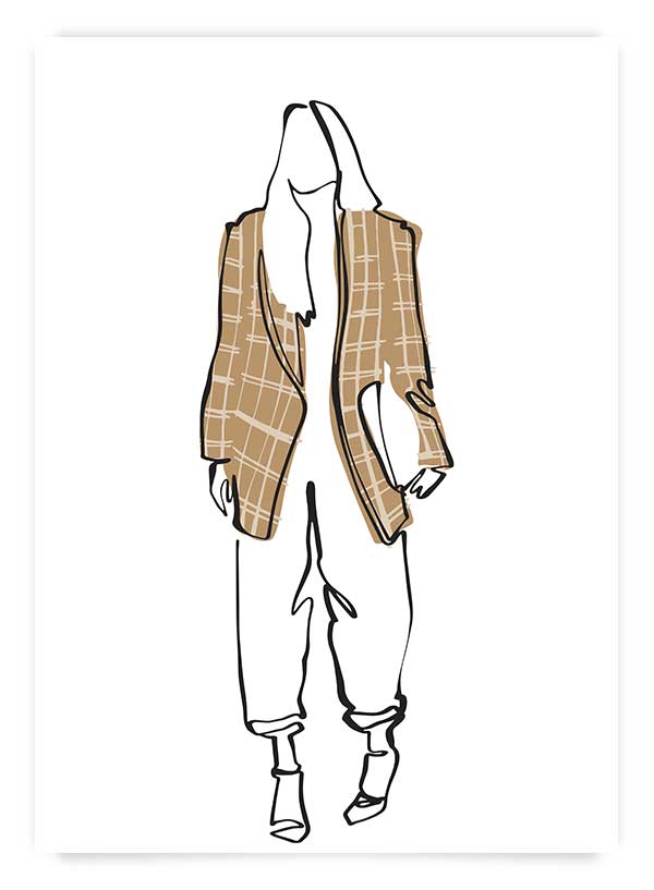 Un poster cu ilustrație fashion sketch care poate fi folosit în amenajarea unui spațiu pentru iubitori de modă și trenduri, în decorarea unui dressing room spațios, precum și într-un magazin de articole vestimentare.